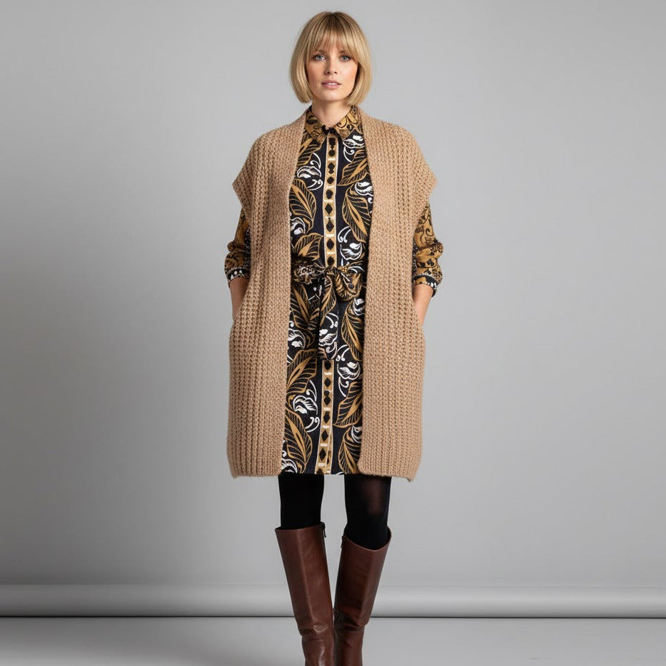 La robe Anissa offre une coupe élégante et moderne avec des coloris dans les tons ocres faciles à associer et qui dynamisent la silhouette