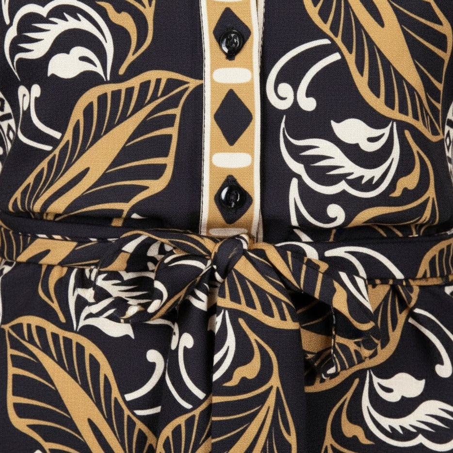Robe chemise en tissu crêpe stretch et motif végétal placé