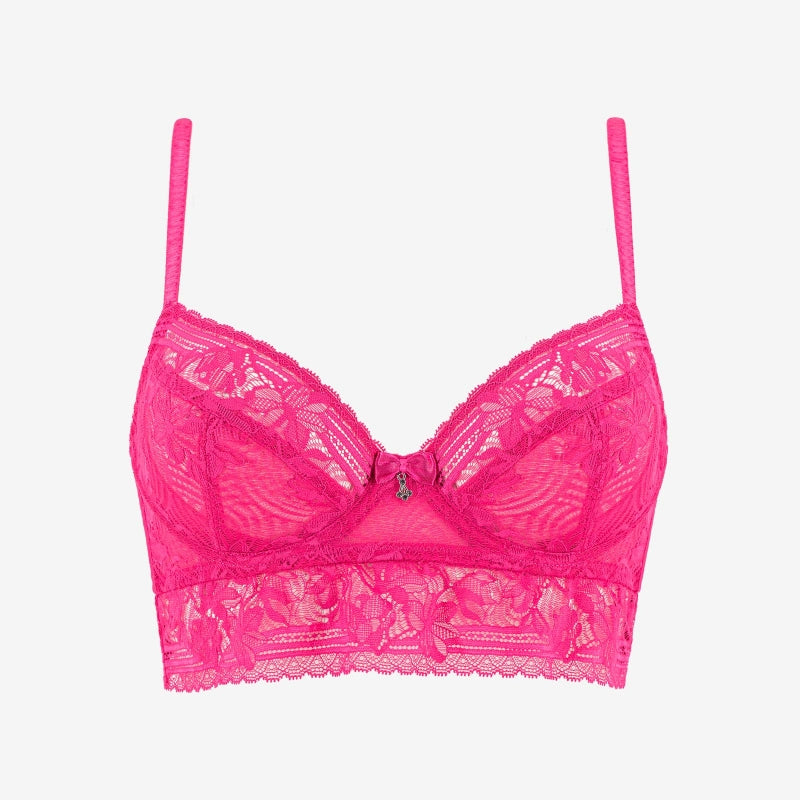 L’attraction entre une dentelle géométrique florale aux fils reliefés mats et brillants et d’un tulle stretch ton sur ton. Pour une touche d’élégance les bretelles du Corbeille sont plissées et satinées et les dessous de poitrine, sont joliment ornés tout au long de la basque de dentelle froncée. Le tout, rehaussé par un somptueux nœud en satin, agrémenté d’un bijou argenté et de ses 4 strass.