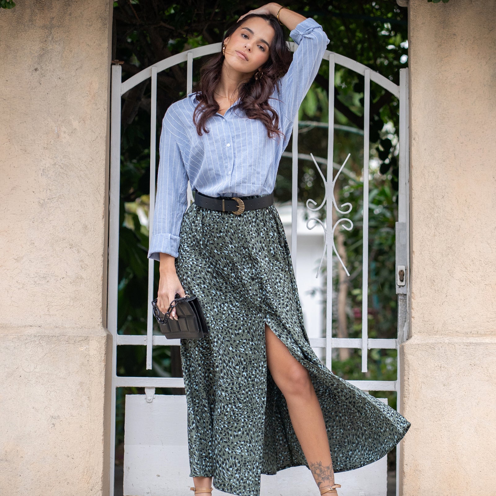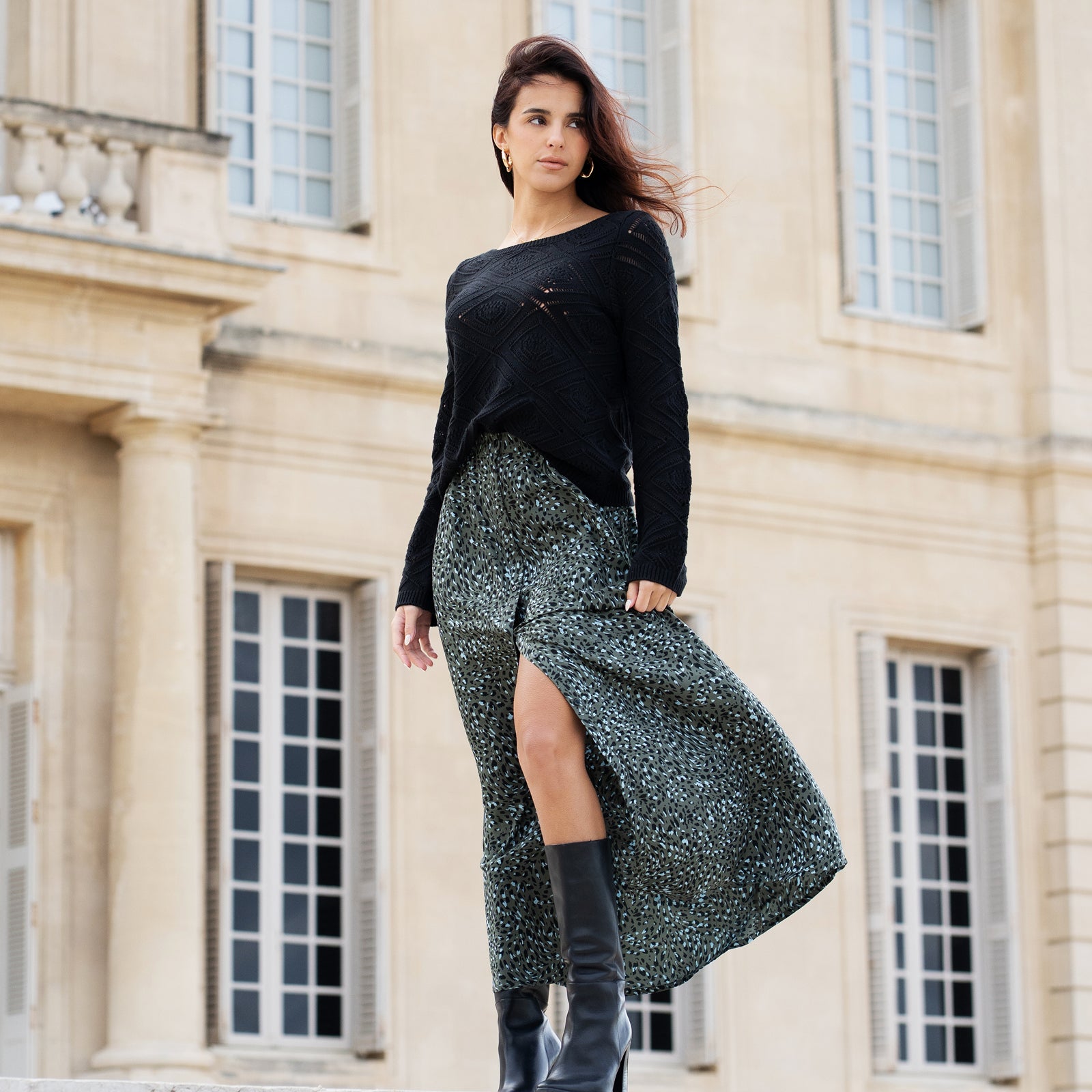 Jupe longue en crêpe à motifs esprit animal