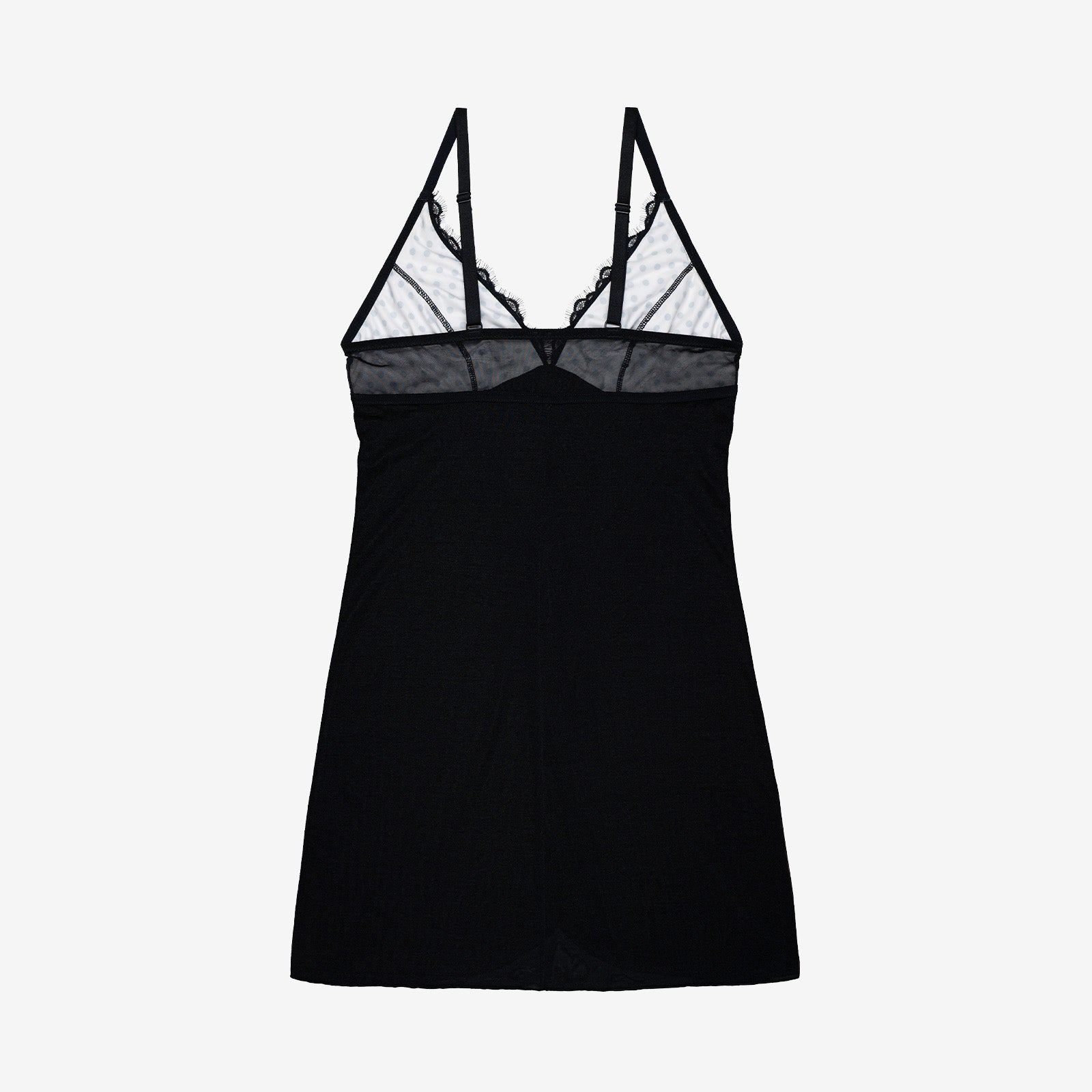 Cette collection marie audace, sensualité et élégance. Chaque pièce met en valeur les courbes féminines, associant délicatement dentelle noire et un imprimé à pois pailleté. Les coupes modernes et les détails raffinés créent un jeu séduisant. La nouvelle forme bandeau illustre parfaitement cette fusion entre glamour, féminité et sensualité.